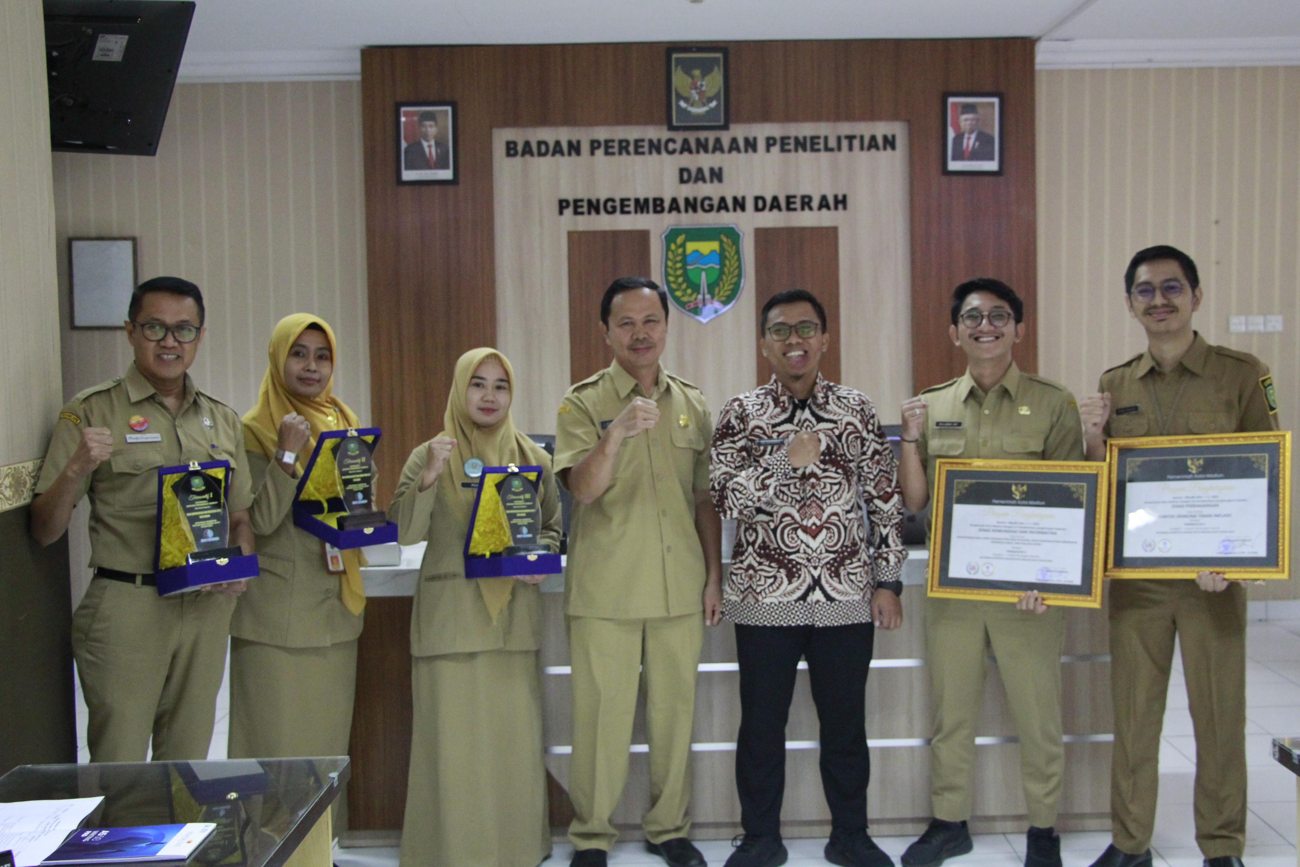 Prosesi pemberian penghargaan KIAT bersamaan dengan dengan terselenggaranya Bimtek dan Monev pengisian Innovative Government Award (IGA) tahun 2024 di Ruang Rapat Bapppeda Kota Madiun.